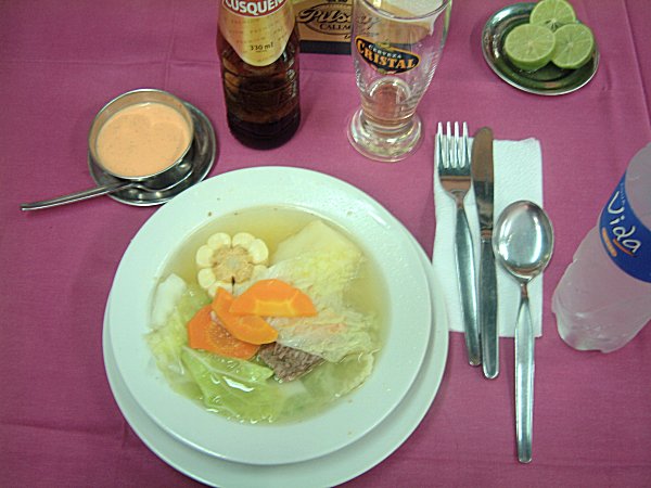 サンコチャードという牛肉と野菜たっぷりのスープ、そしてルクマという果実のアイスクリームがおいしかった。