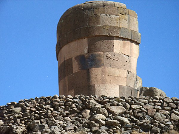 標高4000メートル、ウマヨ湖を見おろす高地に立つ、この遺跡はプレ・インカ時代からインカ時代にかけて作られた石塔の墓。