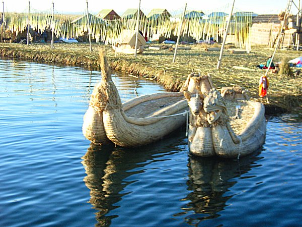 ウロス島はトトラと呼ばれる葦で作られた浮島。