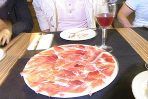 イベリコ豚の生ハム、ガルシアのたこ、マテ貝などを食べながら、ワイン、サングリアを飲む。