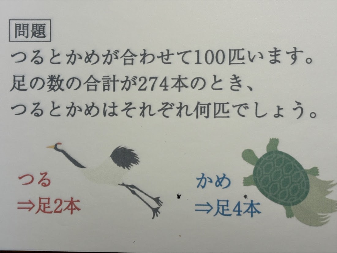 参加者につるかめ算をやってもらい正解者1名に会場レストランのペアお食事券をプレゼント。とても盛り上がりました。