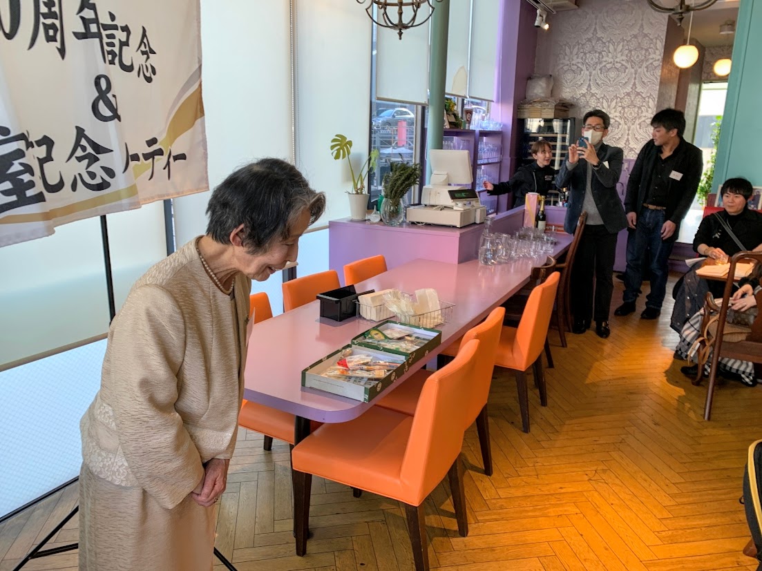 私が教室を続けることを応援し記念パーティーを楽しみにしていた夫が、会の少し前の12月に亡くなり、姿が無かったのが悲しく残念でした。