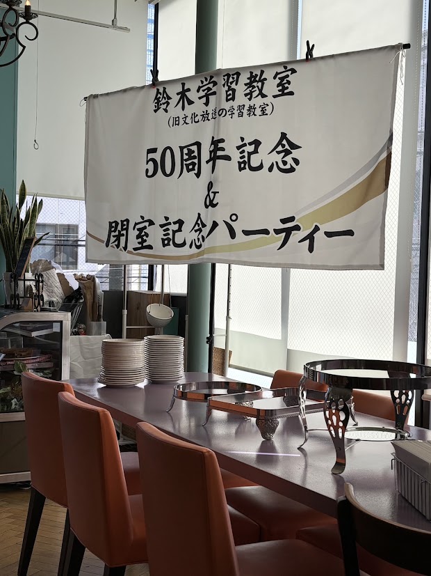 教室の50周年記念と閉室記念パーティーを2025年2月9日にレストラン「エガリテ」で開きました。